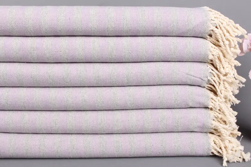 Kişiye Özel Bej Çizgili Leylak Türk Hamam Havlusu, 36x71 İnç