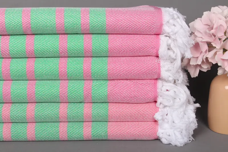 Kişiye Özel Chevron Havlu Organik Pamuk Fuşya-Yeşil, 36x67 İnç