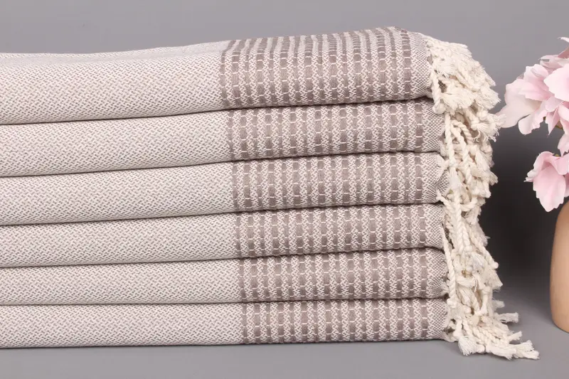 Çizgili Türk Pamuk Havlu Kahverengi Bej, El Yapımı Hediye, 36x69 İnç