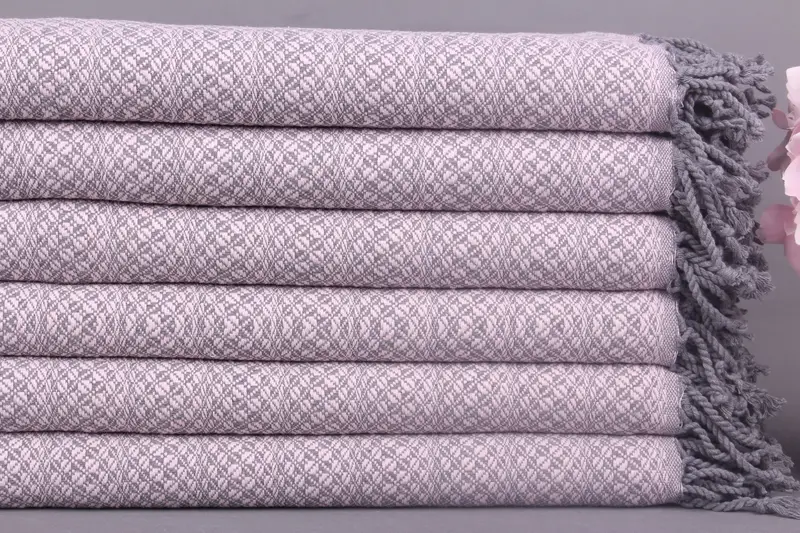Monogram Plaj Havlusu Türk Organik Pamuk Açık Pembe, 38x71 İnç