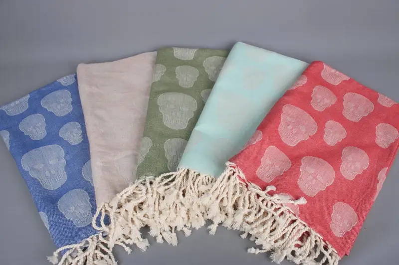 Kafatası Desenli Kafatası Organik Pamuk Plaj Havlusu, 36x67 İnç