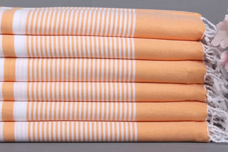 Kişiye Özel Büyük Boy Türk Plaj Havlusu Çizgili Açık Turuncu, 40x79 İnç