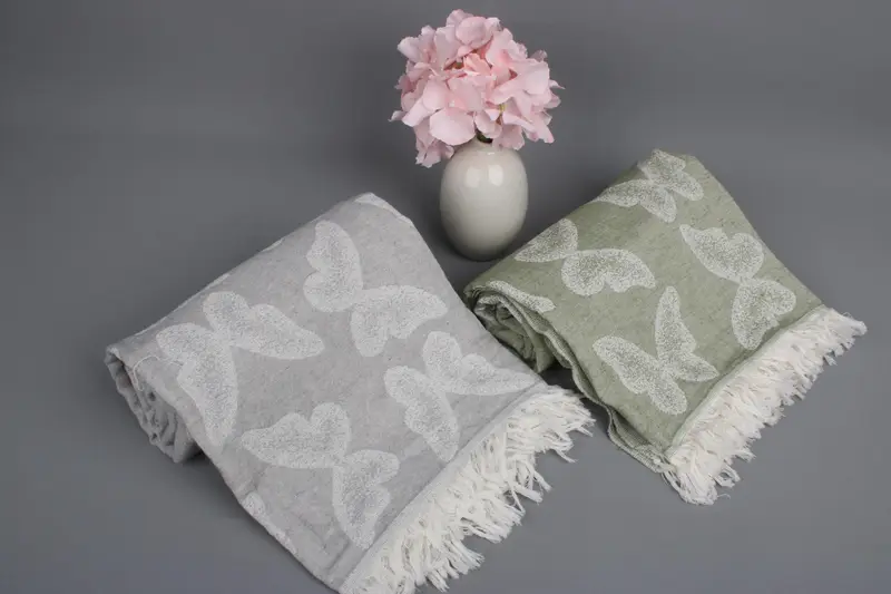 Kelebek Desenli Türk Plaj Havlusu Organik Pamuk, 36x67 İnç