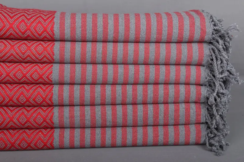 Düğün Hediyeleri Türk Pamuk Havlu Kırmızı Bej Monogram, 40x71 İnç