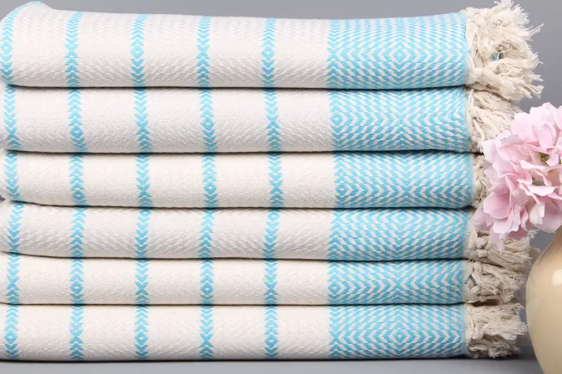 Kişiye Özel Türk Plaj Havlusu Özel Turkuaz Elmas Çizgili, 40x79 İnç
