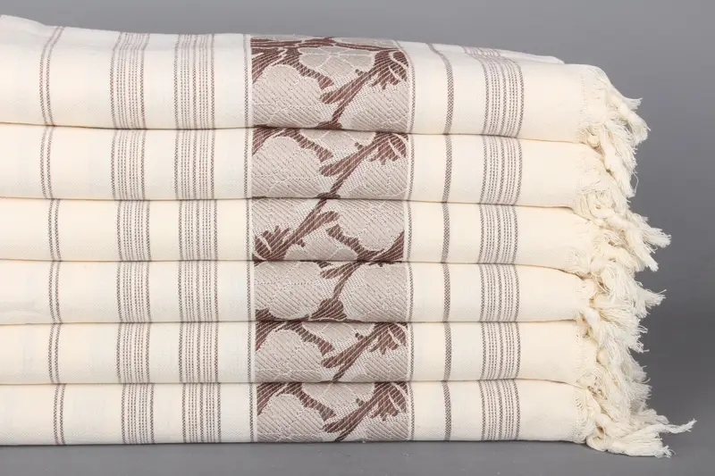 Kişiye Özel Papatya Desenli Havlu Banyosu, Kahve-Bej Keten, 40x71 İnç