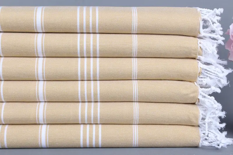 Türk Havlusu Plaj Kişiye Özel Hardal Çizgili Banyo Havlusu, 40x71 İnç
