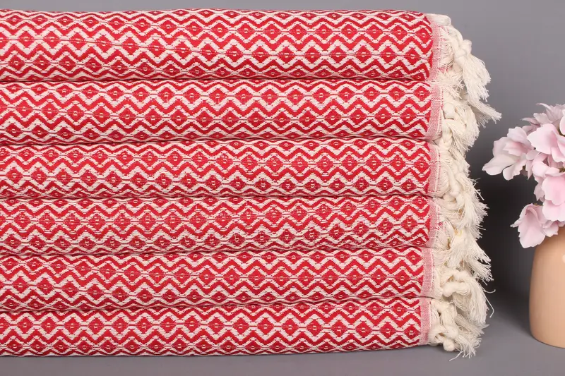 Özel El Havlusu Elmas Çay Havlusu, Kırmızı Pamuk, 18x36 İnç