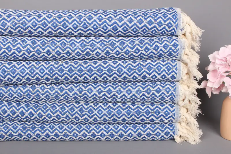 Monogramlı El Havlusu Kişiye Özel Mutfak Havlusu Sax Mavi Pamuk, 18x36 İnç