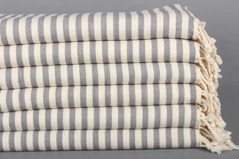 Çizgili Bulaşık Havlusu Koyu Gri Pamuk 18x40 İnç Monogram Mutfak Havlusu