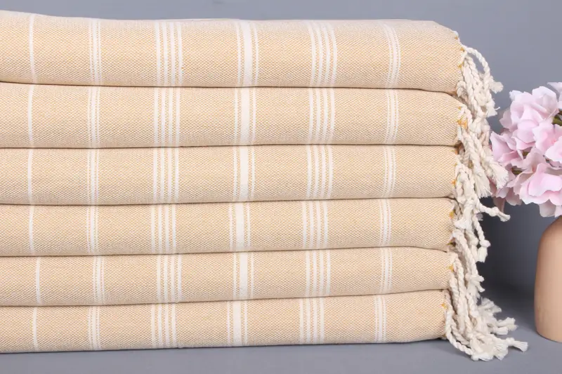 Düğün Hediyesi Çizgili Pamuk Hardal El Havlusu, 24x38 İnç