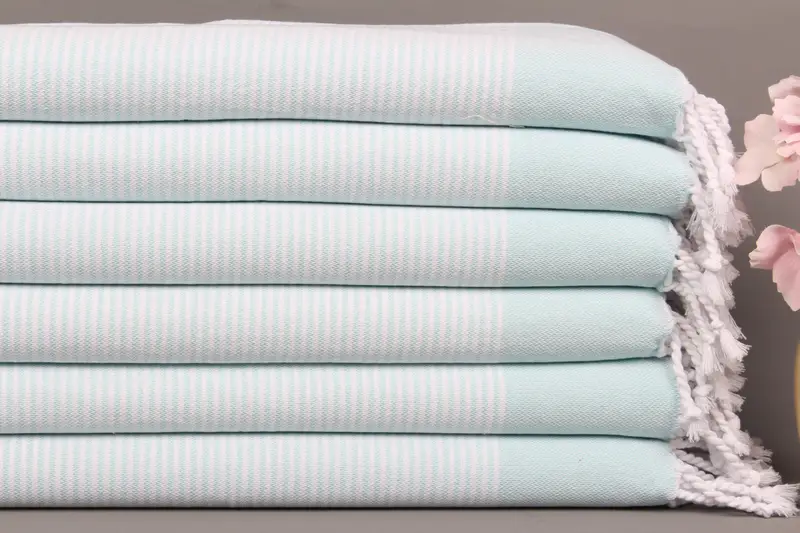 Özel Organik Pamuk El Havlusu Nane Çizgili, 18x40 İnç