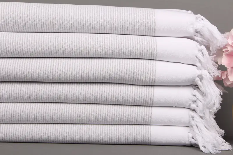 İşlemeli El Havlusu Kişiye Özel Mutfak Havlusu Açık Gri Çizgili 18x40 İnç