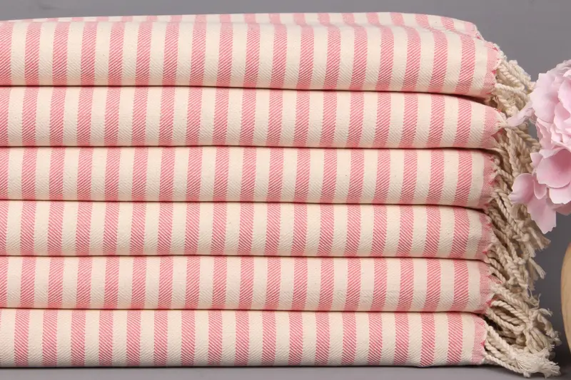 Özel İşlemeli Pembe Chevron El Havlusu, Organik Pamuk, 24x40 İnç