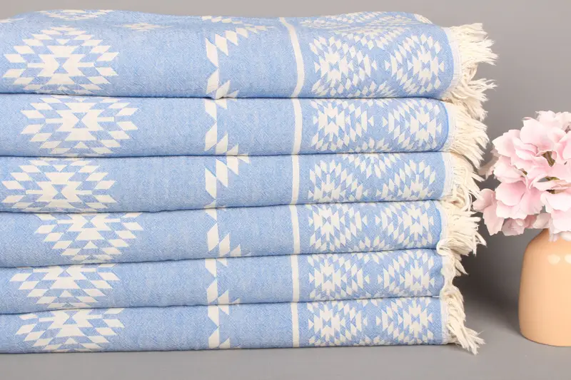 Türk Çay Havlusu Organik Pamuk Saks Mavi, 18x40 İnç