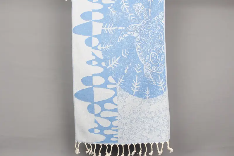 Özel El Havlusu El Dokuma Petrol Mavisi Hayvan Baskı, 18x36 İnç