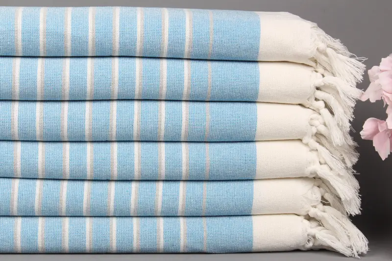 Pamuk Dokuma Türk El Havlusu, Açık Mavi Çizgili, 18x36 İnç