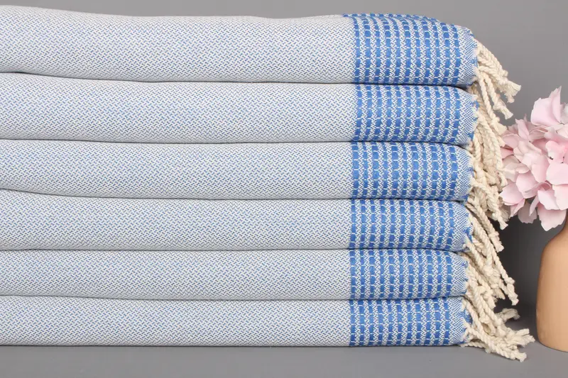 Kişiye Özel El Havlusu Organik Pamuk, Petrol Mavisi Çizgili, 20x40 İnç