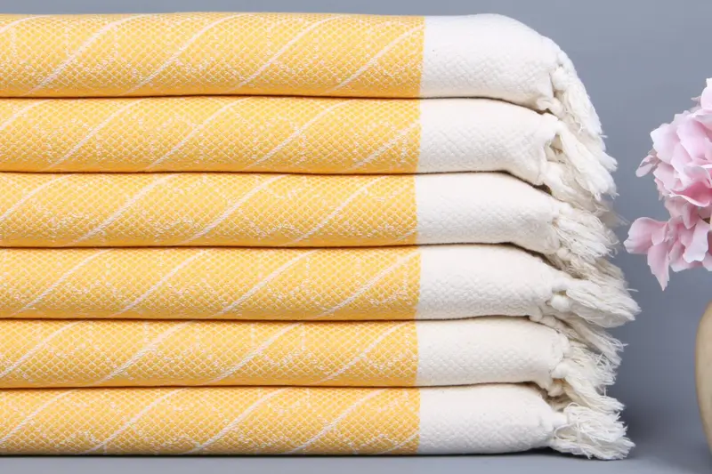 Özel Hardal Geometrik El Havlusu Organik Pamuk Bej, 18x36 İnç