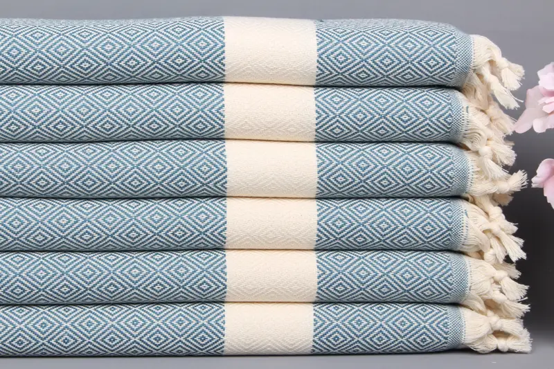 Monogramlı Petrol Mavisi Mutfak Havlusu, Organik Pamuk, 20x36 İnç