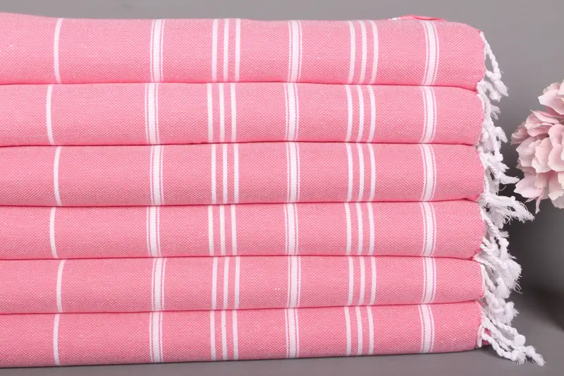 Pembe Pamuklu Çay Havlusu Çizgili Mutfak Havlusu, 24x40 İnç