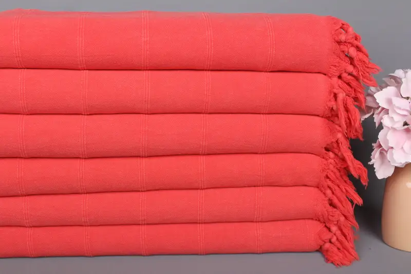 Türk Havlusu El Havlusu Pamuk Kırmızı Bej, 36x22 İnç