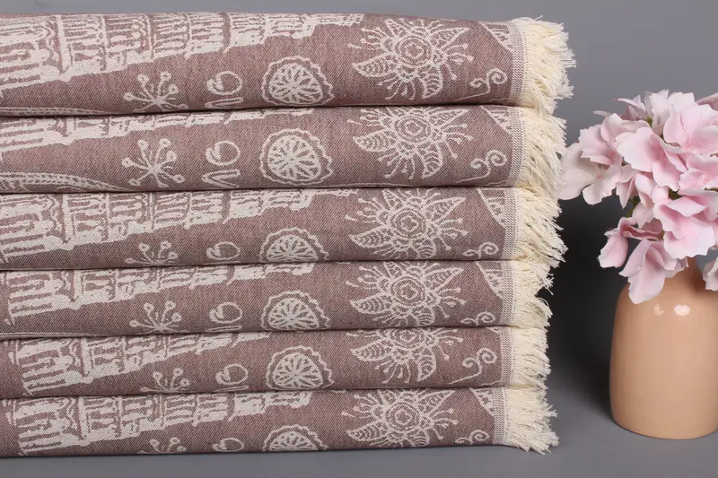 Banyo Havlusu Organik Pamuk Kahverengi İtalyan Sembolleri Tasarım, 20x28 İnç