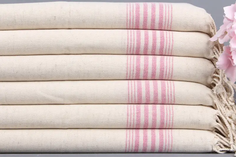 İşlemeli El Havlusu Fuşya Çizgili Keten Banyo Havlusu, 18x36 İnç
