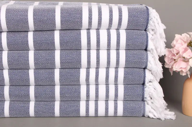 Lacivert Pamuklu El Havlusu Kişiye Özel Zig Zag Mutfak Havlusu, 20x40 İnç