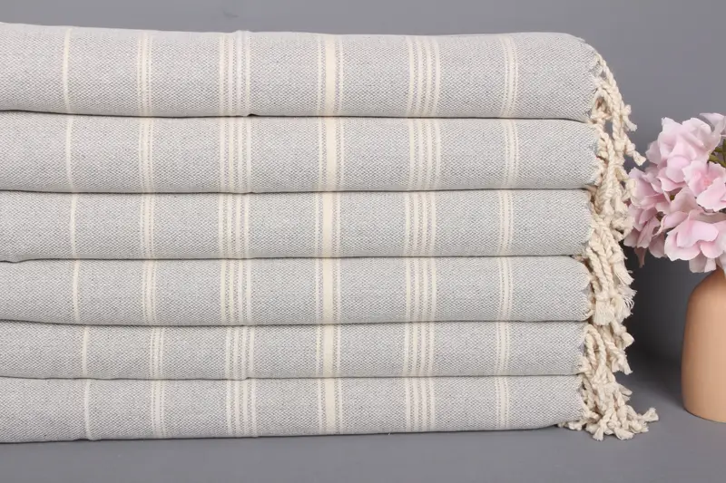Çizgili Bulaşık Havlusu Kişiye Özel Organik Pamuk, Koyu Gri, 24x38 İnç