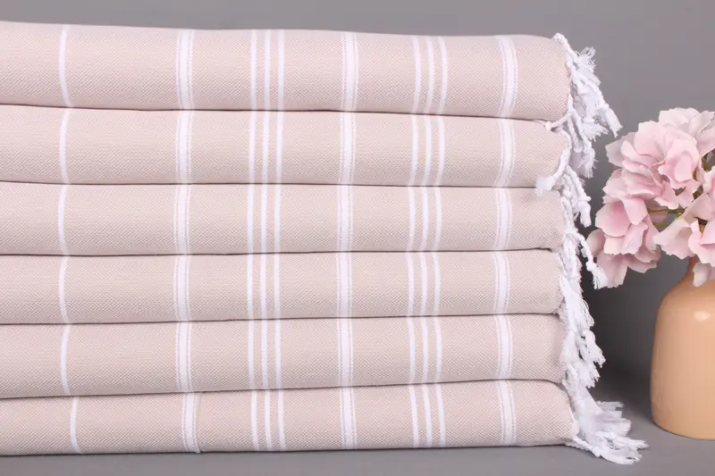 Kişiye Özel 24x40 İnç Bej Çizgili Pamuklu Mutfak Havlusu