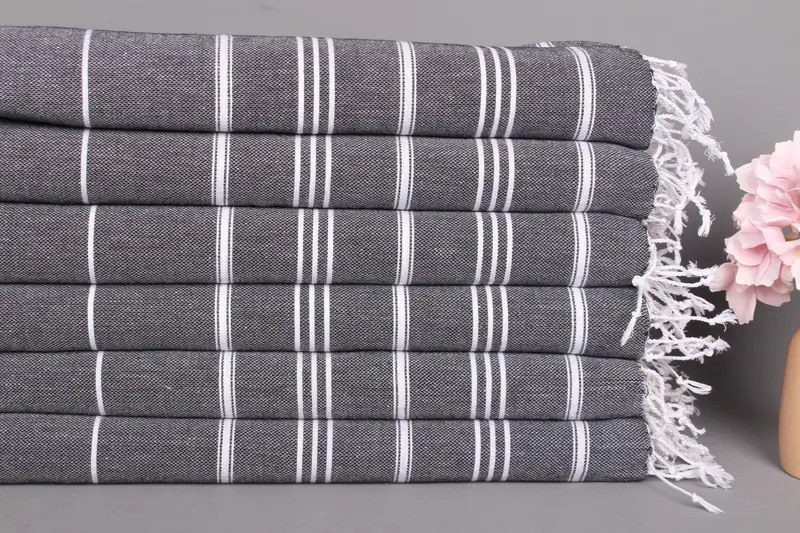 Mutfak Havlusu Çizgili El Havlusu Siyah Pamuk, 24x40 İnç