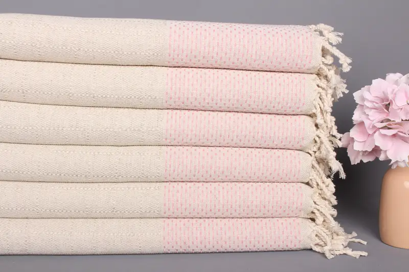 Kişiye Özel Mutfak Havlusu Puantiyeli Pembe Pamuk, 20x40 İnç