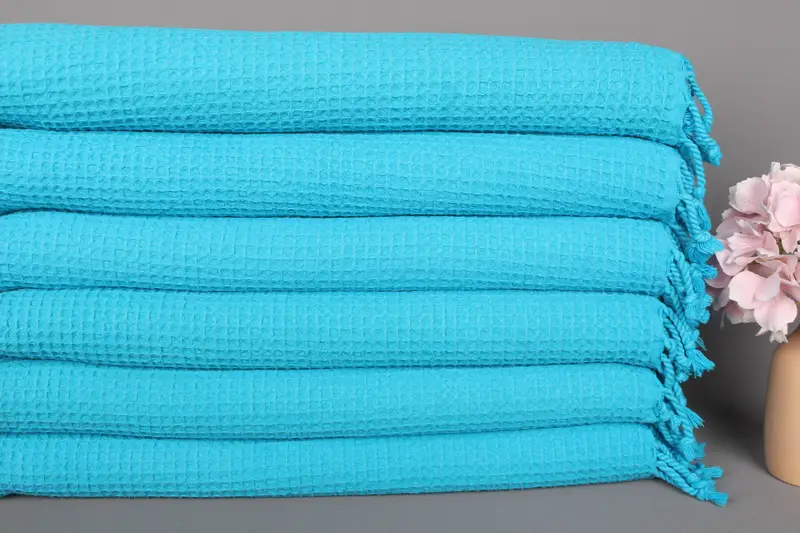 Kişiye Özel Waffle El Havlusu Organik Pamuk Turkuaz, 20x40 İnç
