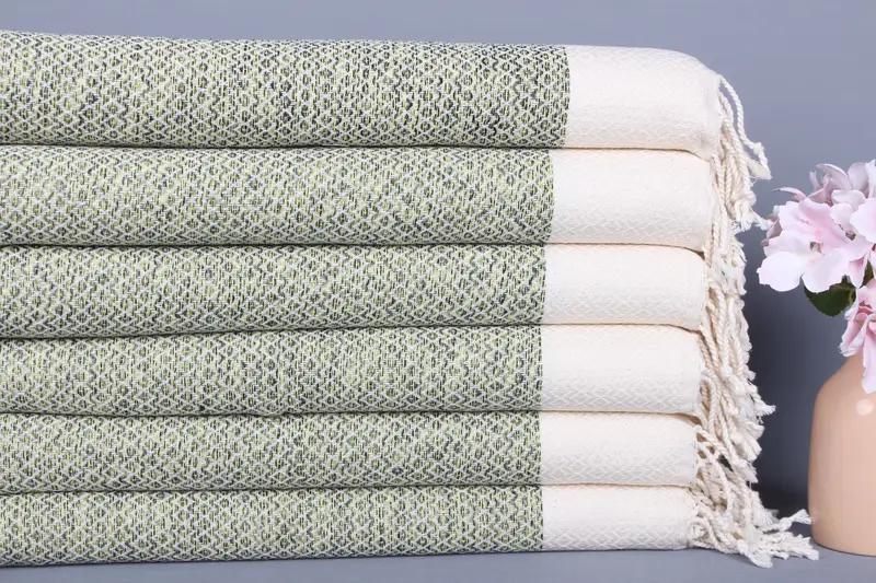 Düğün Hediyesi Parlak Yeşil Pamuklu Çay Havlusu, Baklava Desenli, 20x40 İnç