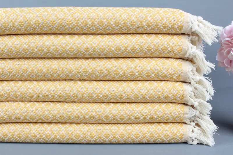 El Havlusu Nakışlı Organik Pamuk Hardal, 20x38 İnç