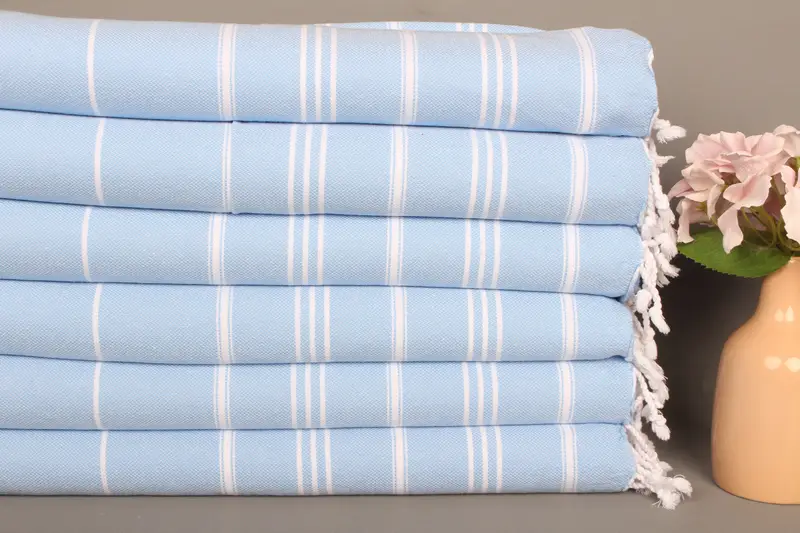 Kişiye Özel Açık Mavi Çizgili Bulaşık Havlusu, Organik Pamuk, 24x40 İnç