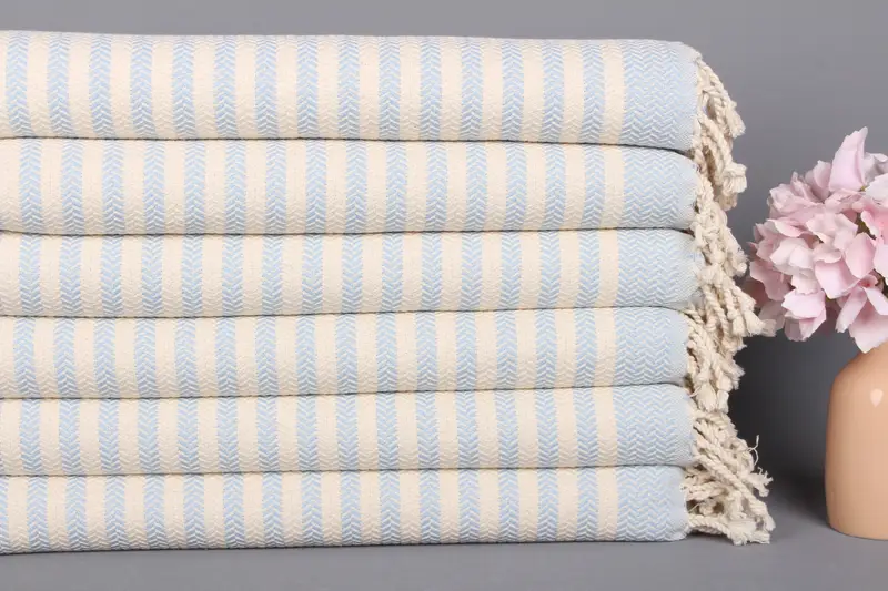 Bebek Mavisi Pamuk El Havlusu Chevron, Mutfak Havlusu, 18x40 İnç