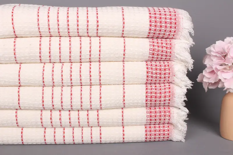 Türk Çay Havlusu Organik Pamuk Kırmızı Waffle, 20x40 İnç