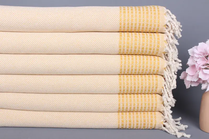 Hardal Pamuklu El Havlusu Çizgili, 20x40 İnç, Organik Pamuk