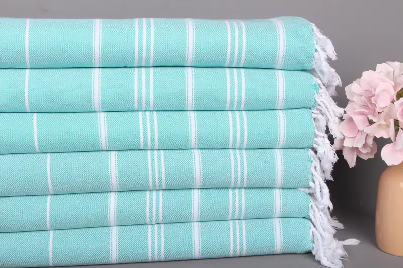 Küçük Banyo Havlusu Çizgili Çay Havlusu Benetton Yeşil Organik Pamuk, 24x40 İnç