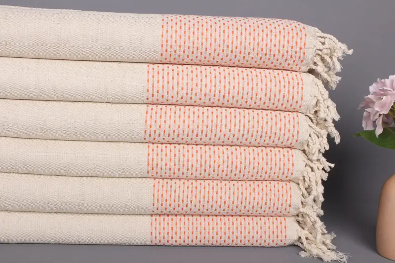 Türk Çay Havlusu Puantiyeli El Havlusu Turuncu Bej Pamuk 20x40 İnç