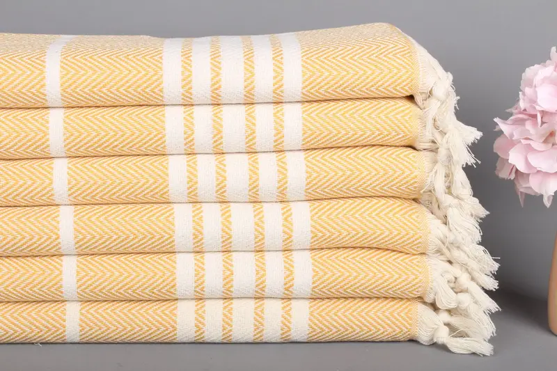 Mutfak Havlusu Organik Pamuk Hardal Çizgili, 20x40 İnç