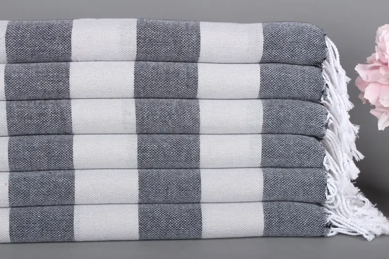 Çizgili Türk El Havlusu Gri-Siyah Pamuk, 18x40 İnç