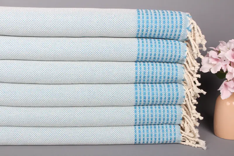 Çizgili Bulaşık Havlusu Kişiye Özel El Havlusu Pamuk Turkuaz Bej, 20x40 İnç