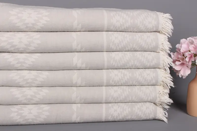 Kilim El Havlusu Organik Pamuk, Açık Gri, 18x40 İnç