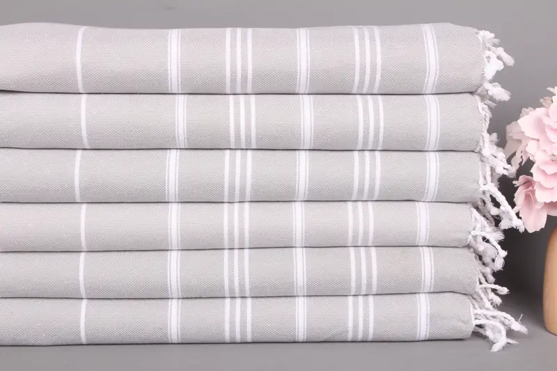 Özel El Havlusu Açık Gri Pamuk Çizgili, 24x40 İnç