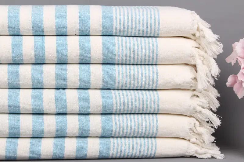 İşlemeli Mutfak Havlusu Monogram Türk Pamuk Turkuaz, 18x36 İnç