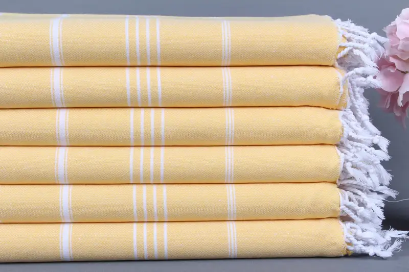 Kişiye Özel Türk Havlusu Sarı Çizgili Organik Pamuk, 40x71 İnç
