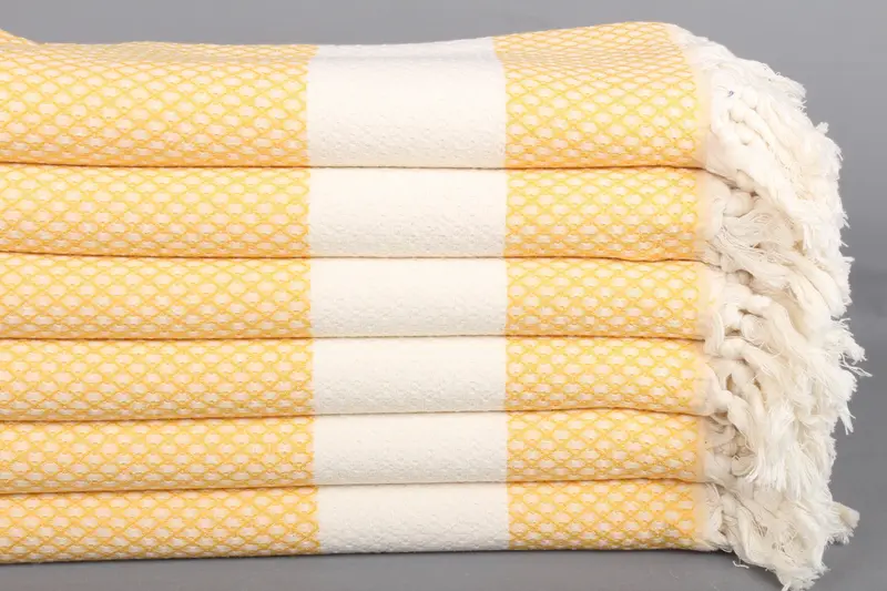 Türk Banyo Havlusu Geometrik Koyu Sarı Organik Pamuk, 36x67 İnç